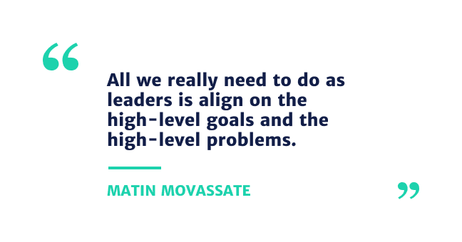 The more you can make that really clear, and the more you can align people on your team to those specific submissions or goals, then the less you need to decide things for them. All we really need to do as leaders is just align on the high-level goals and the high-level problems. If we can be really good at what we’re trying to do and why and the context around it, then I shouldn’t be making these decisions, these decisions at the individual product level, nor should any other, anyone else at the leadership level at Heap.
