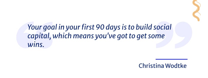 I mean, there’s a lot of things to say about that. One is, your goal in your first 90 days is to build social capital, which means you’ve got to get some wins. You’ve got to teach people to trust you. You have to let people know that you’re not going to be dangerous to them. It means having lots and lots of cups of coffee or tea with everybody you possibly can. And just sitting there and listening to them.