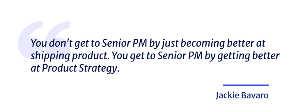 You get better and better and better at that. But to get to Senior PM, the role changes. And you don’t get to Senior PM by just becoming better at shipping product. You get to Senior PM by getting better at product strategy.