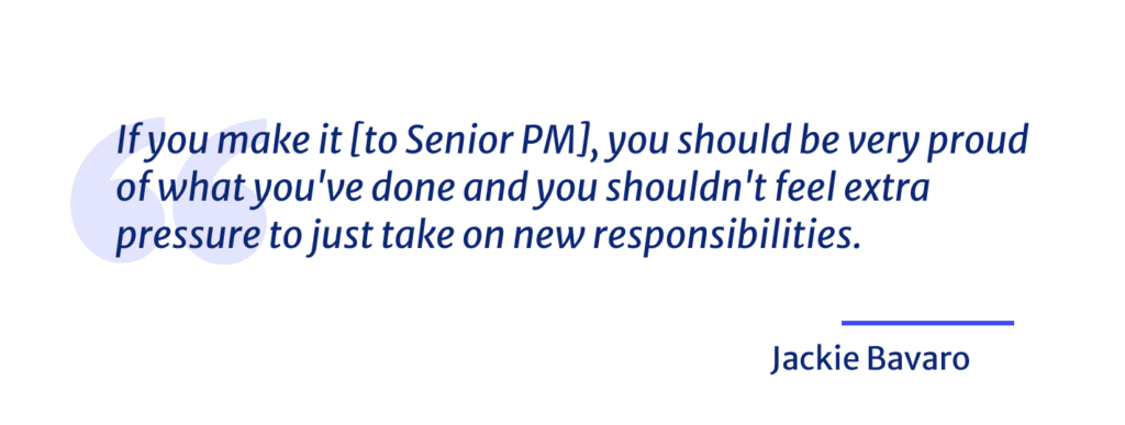 And really career success can mean so many different things to different people. That’s an entirely valid approach to your career. If you make it that far, you should be very proud of what you’ve done and you shouldn’t feel extra pressure to just take on new responsibilities. There is the Principal PM role. The title between Senior PM and Principal PM can vary from company to company.