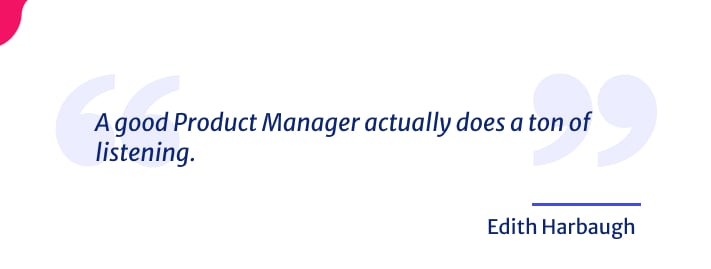 A good Product Manager actually does a ton of listening. Like they go out and they listen to customers, they listen to what the customers don’t like. They talk to prospective customers about what a prospective customer wants. And you listen, it’s not the myth of Steve Jobs that just pulls ideas out of thin air and makes them happen. It’s listening.