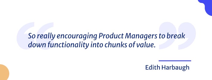 So really encouraging Product Managers to break down functionality into chunks of value. Don’t break it down into two smaller chunks because then it’s like, well, nobody even notices it. And then think about how you want to roll it out. Like, do you want to roll it out to a couple of early adopters, who are going to give you really friendly feedback? Which was a pattern we used a lot at TripIt.