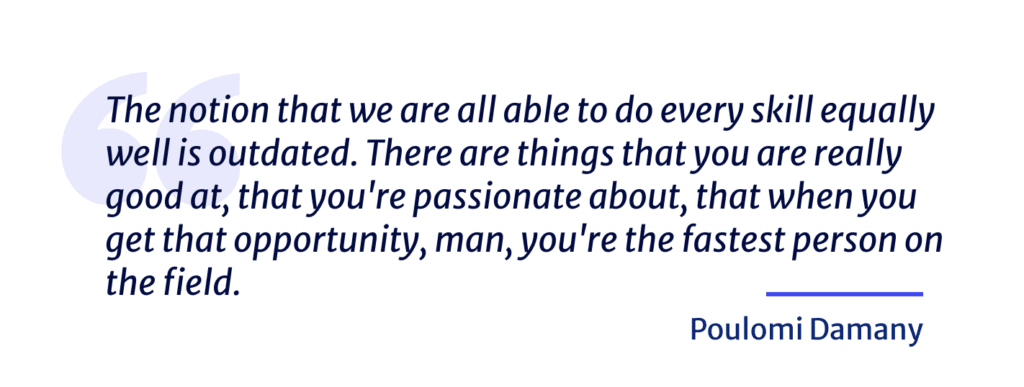 And then last is, I see sort of some sort of, one area of spike. I think the notion that we are all able to do every skill equally well is outdated. There are things that you are really good at, that you’re passionate about, that when you get that opportunity, man, you’re the fastest person on the field. I wanna look for those spikes because that’s what you wanna double down.