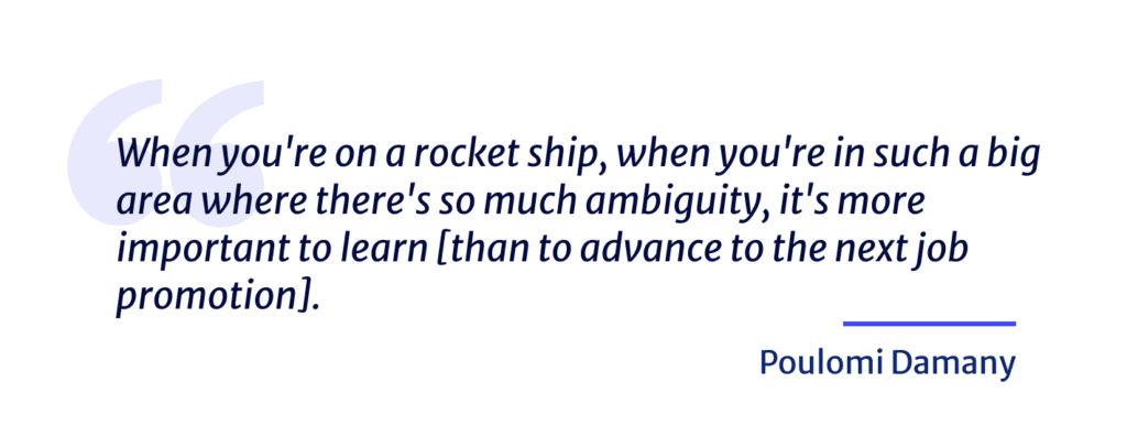 And really what I’m trying to do is say, Hey, when you’re on a rocket ship, when you’re in such a big area where there’s so much ambiguity, it’s more important to do lateral stuff. It’s more important to learn. It’s more important to like build different skills than it is to be like, Oh, I did this. Then I became a Principal Product Manager, and I became a Group PM, and so on and so forth.