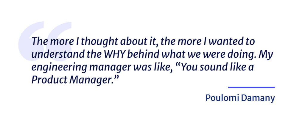 That’s a really good question. Like most engineers, I started off in the engineering side and building according to what somebody had laid out. And the more I thought about it, the more I wanted to understand the why behind what we were doing. Getting more context, understanding what the user benefit would be, how would we differentiate?