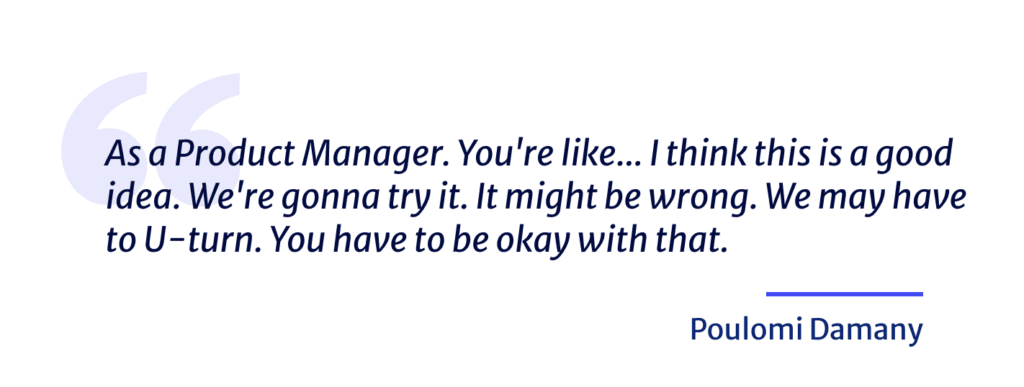 Then as a Product Manager. You’re like… I think this is a good idea. We’re gonna try it. It might be wrong. We may have to U-turn. You just have to be careful, you have to be okay with that.