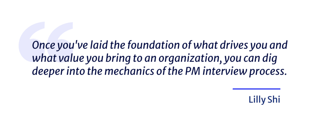 Once you’ve laid the foundation of what drives you and what value you bring to an organization, you can dig deeper into the mechanics of the PM interview process, and practice pitching yourself. In this case, you are the product. How you would frame a product is how you frame your experience.