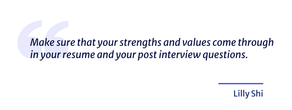 There’s a balance between valuing your own experience but also recognizing what the gaps are. If they’re asking you for something and you straight up do not have experience there, you can say that and say, “Hmm, I’m not sure.” Or, “that’s a good question. If I had to think about it right now, this is what I would do, based on my understanding.” You can also sometimes turn the question back around on them and say, “What is your current process? And what are the areas of improvements that you want to see with the person that would fill this role?”