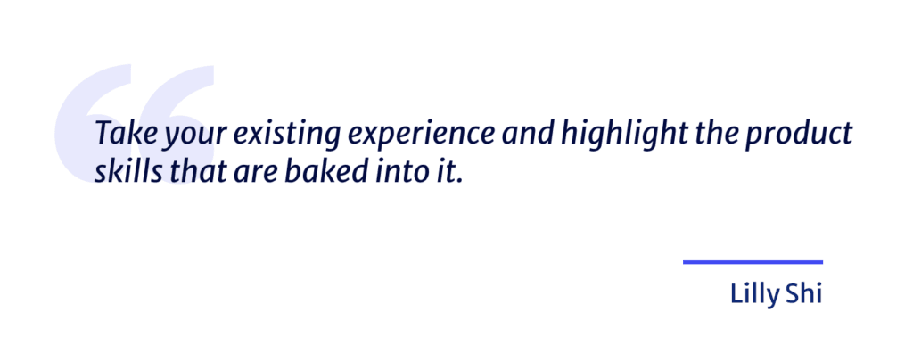 So how? What you want to do is essentially take your existing experience and highlight the product skills that are baked into it. Ask yourself, where have you demonstrated long-term thinking and strategy? Have you worked with users or data to deliver business impact? When have you had to make trade-offs in a constrained environment?