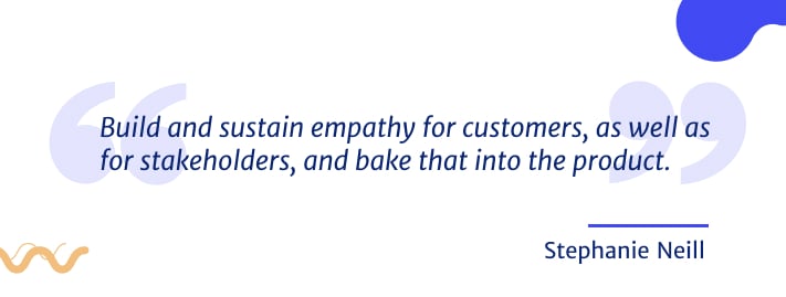 And then as you’re a little bit further along in Product Management, I think empathy for your customer, staying really customer centric. Especially as PMs, because we deal with stakeholders all the time, it’s so easy to fall back into business jargon and talking about dollars per thousand hours watched. And things that are outputs, they’re not actual outcomes for your customers. Building and sustaining that empathy for customers, as well as for stakeholders, and baking that into the product.