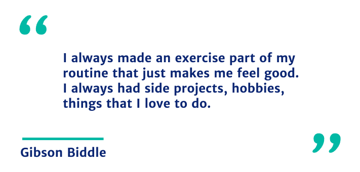 I always made an exercise part of my routine that just makes me feel good. I always had side projects, hobbies, things that I love to do. So that’s happened for decades for me.
