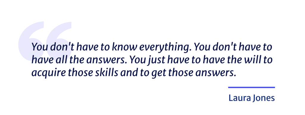 That was a big unblock for me, of realizing that it was okay to sign up for something that I wasn’t already a total expert in, knowing I could then learn those skills. That is a big unblock in a career to realize that you don’t have to know everything. You don’t have to have all the answers. You just have to have the will to acquire those skills and to get those answers. Again, through a learning process, and have that confidence that you can do that and you can get smarter and get better.