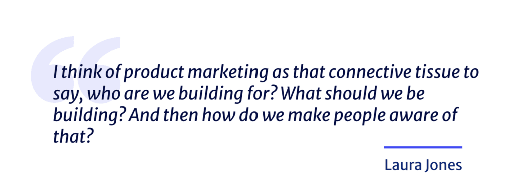 I think of product marketing as that connective tissue to say, who are we building for? What should we be building? And then how do we make people aware of that? And how do we take that message, put it into the biggest loudest messages that the company is distributing via the marketing channels. And I think that’s the real value of product marketing.