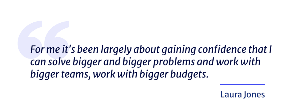 For me it’s been largely about gaining confidence that I can solve bigger and bigger problems and work with bigger teams, work with bigger budgets. It really has been this iterative approach of applying that framework, seeing where it works, seeing what it does, and then building confidence that no matter how big the problem, if you have a structured way to approach it, you’ll eventually get to a great solution.