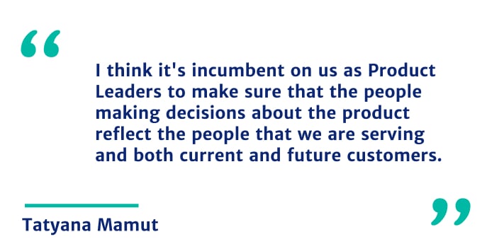 Tatyana [00:34:24] We think about this a lot and we kind of push on this a lot. So at the foundation, I think it’s incumbent on us as Product Leaders to make sure that the people making decisions about the product reflect the people that we are serving and both current and future customers. It’s a business decision to make sure that we have those views represented of the people who are our current customers and our future customers on our product team and not just on our product team but making the critical decisions around the product. And so that’s fundamentally the philosophy that I bring into hiring. Do I have the perspectives on the team to make the right decisions for the product both now and in the future? And where we strategically know that we want to go.