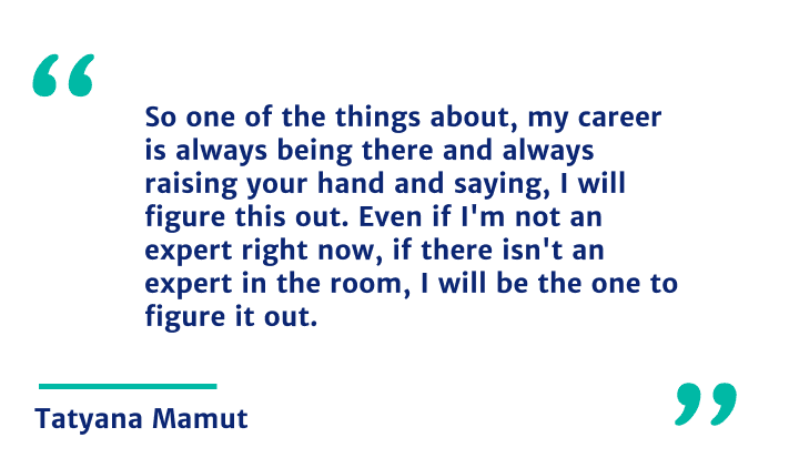 So one of the things about, my career is always being there and always raising my hand and saying, I will figure this out. Even if I’m not an expert right now, if there isn’t an expert in the room, I will be the one to figure it out.