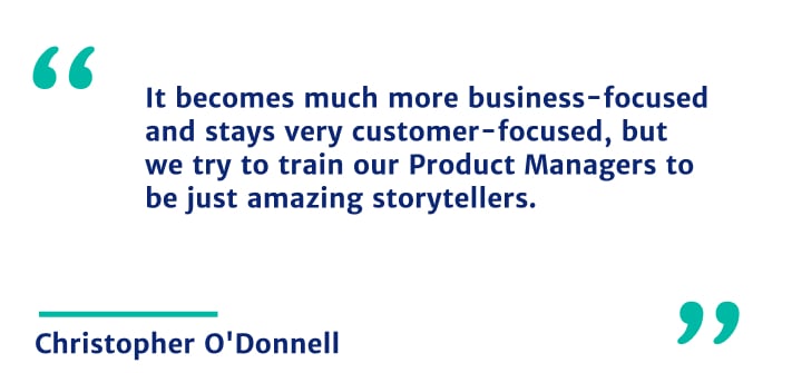 Christopher [00:03:51] Huge. When I joined HubSpot, I was the front-end developer for the stuff I was working on. I was the designer, I was the UX researcher, I was the support expert, I was the sales trainer, all of these things. And today, we have people who sit in each of those roles, and so what is the product manager left to do? It becomes much more business-focused and stays very customer-focused, but we try to train our Product Managers to be just amazing storytellers.