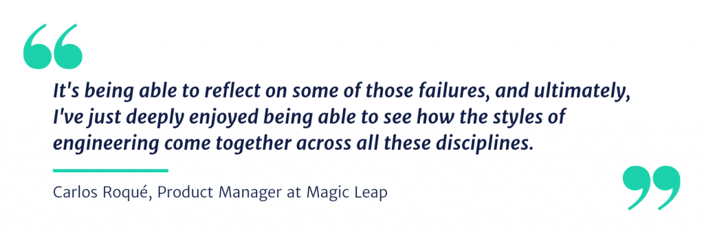 There are different elements and different approaches to engineering and that delight and that design. However, at the, at the base of it, it’s making sure that the customers are at the center of it, making sure that we’re satisfying the things we set out to. Sometimes you might swing and miss, but it’s ultimately being able to come back and say, ‘okay, well what did we, what direction did we swing toward? Why did we miss?’ It’s being able to reflect on some of those failures, and ultimately, I’ve just deeply enjoyed being able to see how the styles of engineering come together across all these disciplines.