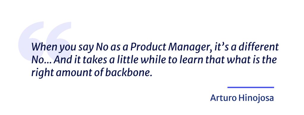 Making those balancing decisions and thinking about the business side, it takes a while to learn. Because again, SEs/SAs are programmed to help. As a PM, you have to be programmed to prioritize, to understand why.